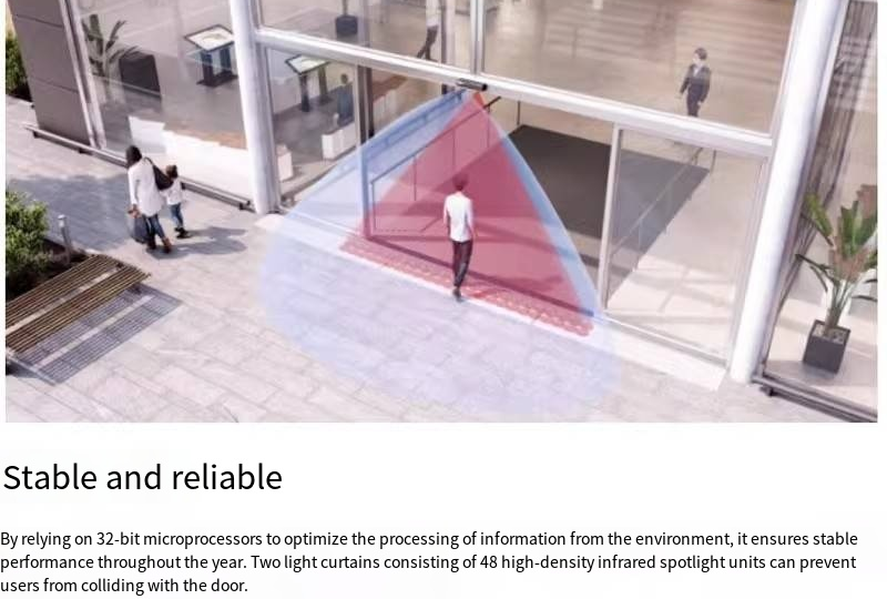 Door opening and safety sensors suitable for automatic sliding doors