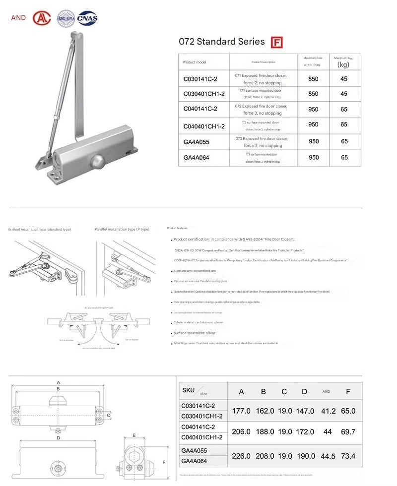 If a door is left open, it can become a channel for the “chimney effect”, accelerating the spread of smoke and flames. Door closers can automatically close open doors, creating fire compartments, buying time for evacuation, and reducing the spread of fire across areas (when used with fire doors, they meet fire protection regulations).