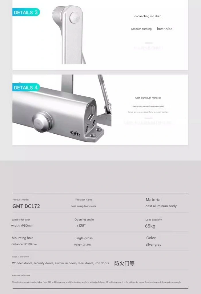 High-quality door closers close silently and smoothly, avoiding the “clanging” sound of traditional manual closing, creating a quieter and more comfortable environment (such as hotel rooms, libraries, bedrooms). In conclusion, the door closer is not merely an “automatic door-closing tool”, but an important device that takes into account safety protection, functional adaptation, cost control, and compliance with regulations. Different scenarios (such as homes, businesses, and public facilities) can further optimize the user experience by choosing different types of door closers (such as hydraulic, pneumatic, or concealed types).