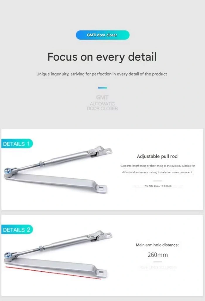 If traditional manual closing is too forceful, it can cause the door to hit the door frame with a loud noise and may injure the hands or feet of the elderly, children, or pets. Door closers control the closing speed through hydraulic or pneumatic structures (usually “fast at the beginning and slow at the end”), avoiding rapid impacts, especially protecting children and people with mobility issues in the family.