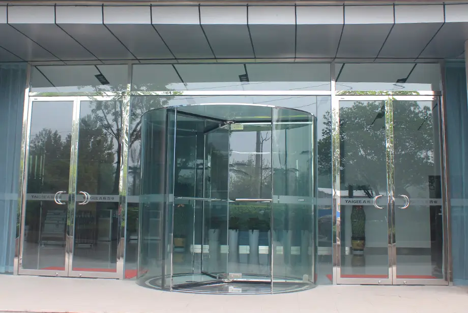 The edge of the door wing is usually equipped with non-contact anti-collision sensors. When the moving door panel approaches the pedestrian’s feet, the revolving door immediately slows down and stops; the right side of the entrance and exit columns is equipped with electronic safety edge switches. When pedestrians are squeezed, the door body immediately stops running to prevent injury to pedestrians. It also comes with slow speed and emergency stop buttons for the disabled, etc.